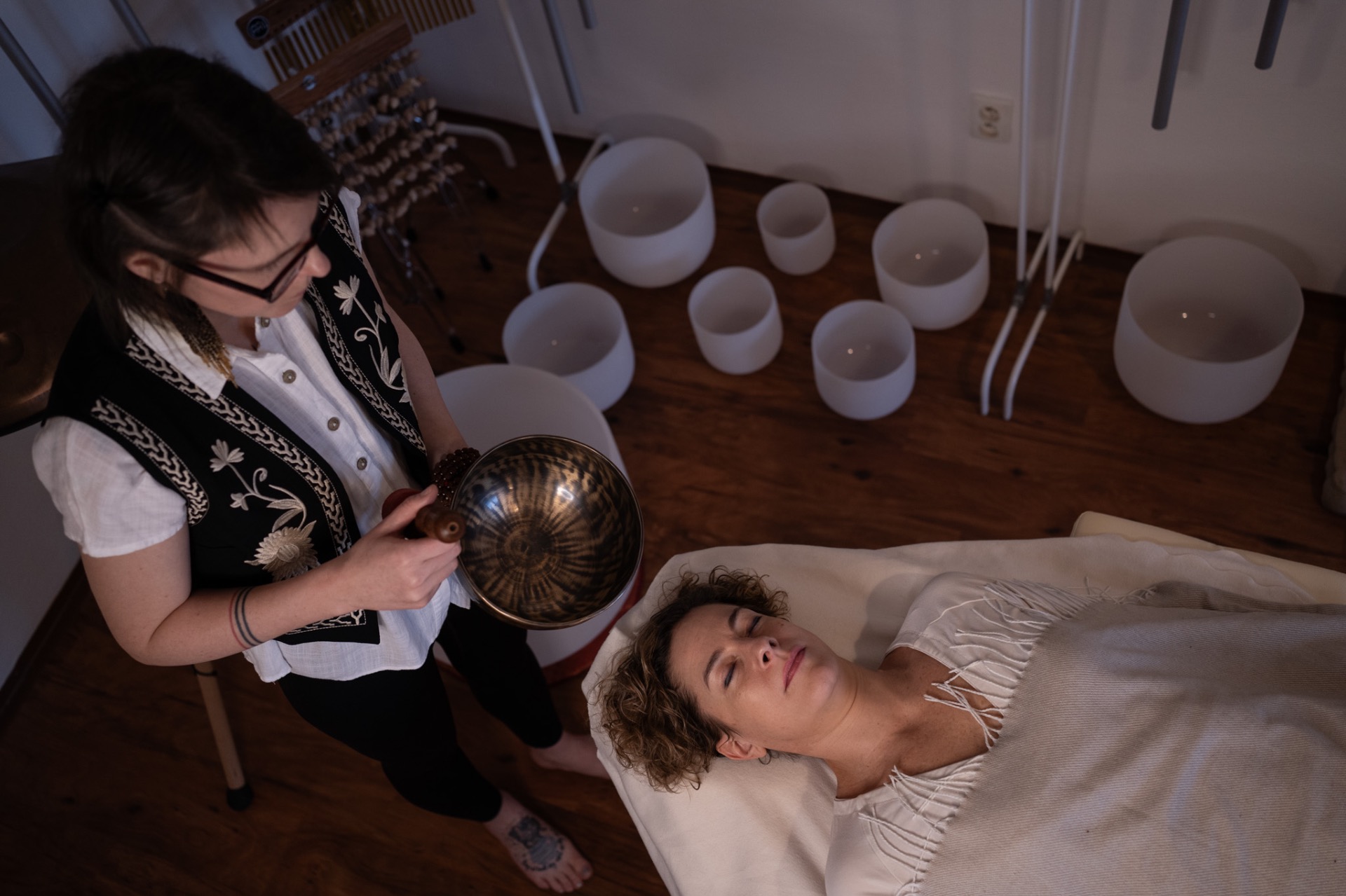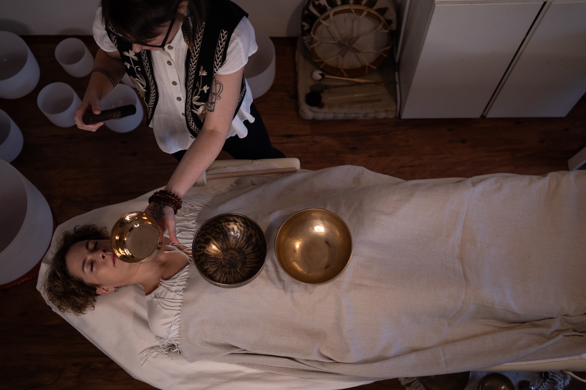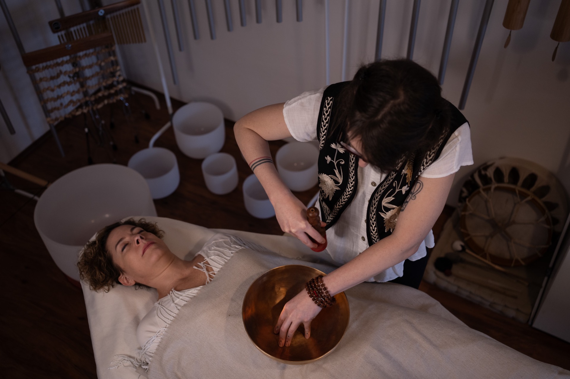 Masáž tibetskými mísami je jemná a přesto velmi hluboká metoda, která působí skrze zvuk a vibrace přímo na tělo i mysl.